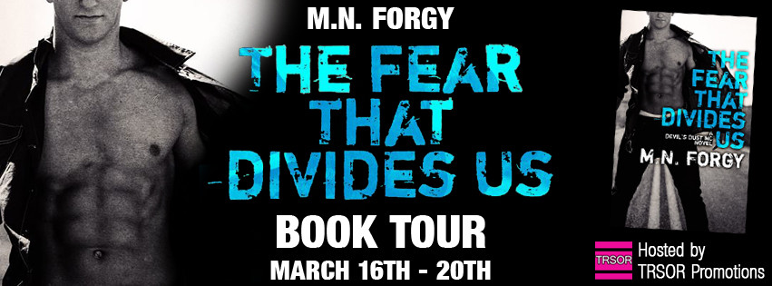 The Fear That Divides Us is about Bobby & Jessica’s story. Jessica had an abusive husband that used BDSM as a guise. Jessica finally ran from this relationship straight to the MC Club that Bobby was in and their relationship started from this meeting. Now you have to read The Fear That Divides Us to know what happened! I am rating this book with 4.5 stars and I look forward to reading more by M. N. Forgy.
