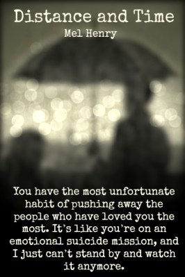 Distance and Time by Mel Henry is the first in the Time after time series. Carly is a high school senior who lives with her mousy mother and an emotional and verbally abusive stepfather. Living a sheltered and dull life she has the opportunity of a life time going from visiting a college in Chicago to meeting her teenage idol. Josh is a member of the hottest boy band. Out one night at a club the two meet, for Carly it is a dream come true, meeting her idol who has graced her bedroom wall. Josh has found a girl who likes him for him and not for the fame.