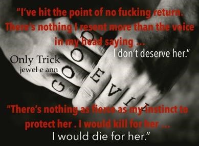 The emotional rollercoaster that Only Trick took me on had me reeling. One minute I’m reading along with giggles, the next I’m completely overheated and finally sent spiraling into tears. Jewel E. Ann has done a great job of keeping the reader interested with all of the twists and turns in this book. The sex is hot and the tears are plenty, but the overall ride was really worth the E-ticket. I enjoyed this book and would definitely read more from this author.