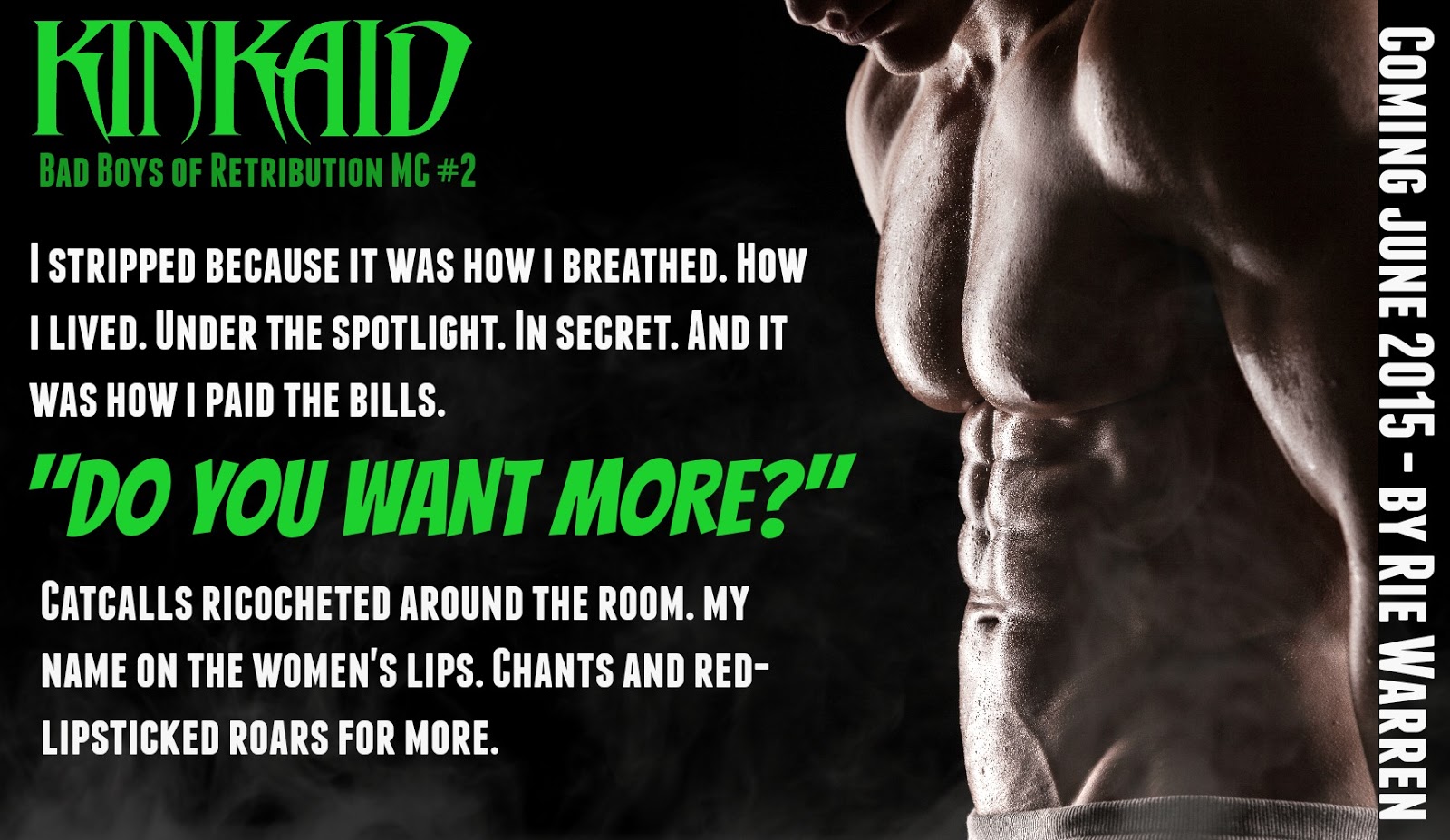 I was given an ARC of the book for an honest review. Kincaid (Bad Boys of Redemption MC, #2) By Rie Warren is the next installment in the men of Redemption MC series. Kincaid was introduced to this reader at the end of Hunter. Kincaid is a probie at the club. Kincaid has a secret that he has been keeping from everyone. 3 nights a week he goes to GQ where he works at a male dancer. Kincaid has been dancing since he was 19 to provide for his ailing grandfather who has raised him since he was a baby. Not even his best friend since childhood Sadie knows of his secret. Even when they were in high school and he was star of the football team and she was a goth chick he stood up for her. Sadie was now a member of the Lady’s of Redemption and they ride together. One night while performing he finds himself face to face with Sadie who is at the club with friends celebrating at a bachelorette party. Both shocked to see each other Kincaid than find himself giving a lap dance to Sadie. During this lap dance something happens to Kincaid that has never happened before he get hard. In all this time being friend with Sadie, he has never had these types of feelings for Sadie before but he also never seen her dressed like this before. From this point each sees the other on a different light. Can they be together when Sadie cannot understand why he has to dance to pay the bills and he cannot understand why she doesn’t see that him dancing is harmless.