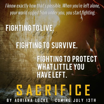 There has been a lot of buildup for this book, and I was honestly skeptical about all the hype. Adriana had written The Exception, The Perception, and most recently, The Connection. I loved the hell out of that series and applauded her talent. But Sacrifice was nothing like she had written before. It was beautiful, raw, painful, and purely gutted me. There were no rich, fancy guys with expensive cars and grand, lavish gestures of romance. Adriana ripped out my heart, put it back together full of love, and I absolutely adore her for it. She surpassed my expectations for this book, and I can’t wait to see more of her writing. She has a beautiful gift, and we are lucky she decided to share it with us.