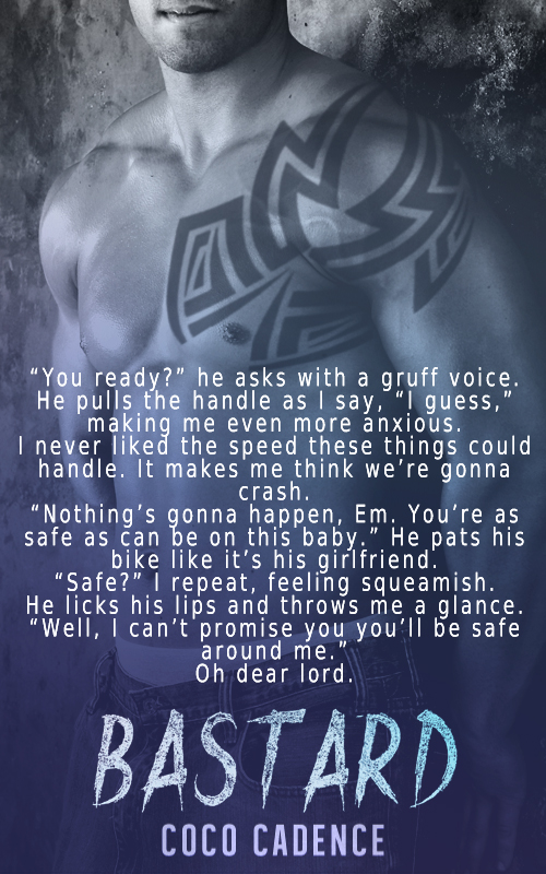 Coco Cadence is an erotic romance writer, who loves cocky heroes and smartass heroines. She adores happy ever after’s as much as her fans do, and she will never stop writing them. In her free time she enjoys reading a good book, playing with her cute dogs, and spending quality time with her soon-to-be husband, but you can always find her drifting off into her mind to think of new stories.