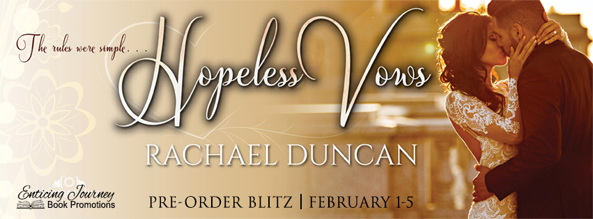 “5 HUGE Stars to Author Rachael Duncan for Hopeless Vows…LOVED IT! Addicting, captivating, unique, inspiring, sexy, snarky, humorous, intriguing, and I could go on and on.” -Ena @Swoon Worthy Books