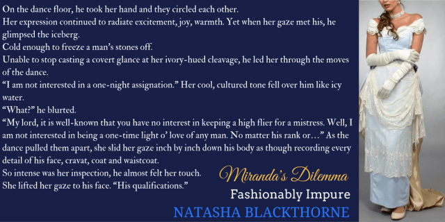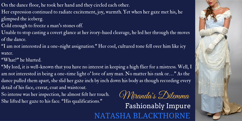 Miranda’s Dilemma (Book One)Poised to become Mayfair’s most expensive and exclusive courtesan, Miss Miranda Jones finds her rise inexplicably blocked by a socially powerful nobleman. Scorned by her ducal father and determined to attain everything that life has denied her due to an accident of birth, she’s not about to let this arrogant earl stop her.