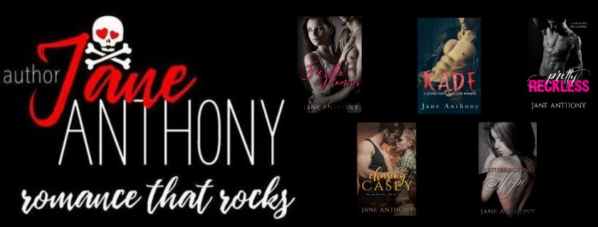 Jane Anthony is a romance author, fist pumping Jersey-girl, and hard rock enthusiast. She resides in the ‘burbs of New Jersey with her husband and children.