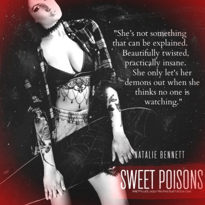 Sweet Poison (Pretty Lies, Ugly Truths Duet #1) by Natalie Bennett is the story of Nova. She is a young lady whose parents have recently died and she is trying to adjust to what has happened. In the town she lives in she is known as a quiet sweet girl but she has secrets. When her and girl friends run into the new guys in town her interest is peaked. Rhett is a bad boy through and through. He has his eyes on Nova and he has more than sex on his mind. In true Natalie Bennett form we get two damaged and deranged individuals who cross paths. I can wait till the next book. I was definitely left with many questions and can’t wait to get them answered. The story kept me intrigued and it was ending before I knew it. It also doesn’t hurt that the relationship between Nova and Rhett was hot and sexy. Come on book 2!!!!! 5 stars for me. I always love a story that ends with wanting more.