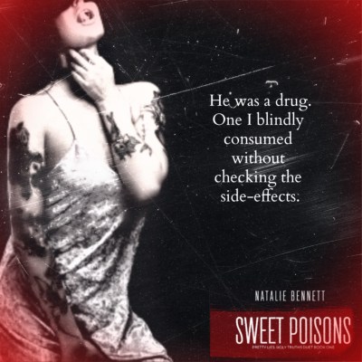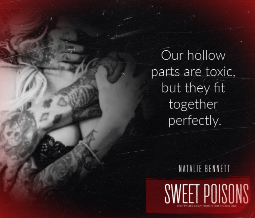 Sweet Poison (Pretty Lies, Ugly Truths Duet #1) by Natalie Bennett is the story of Nova. She is a young lady whose parents have recently died and she is trying to adjust to what has happened. In the town she lives in she is known as a quiet sweet girl but she has secrets. When her and girl friends run into the new guys in town her interest is peaked. Rhett is a bad boy through and through. He has his eyes on Nova and he has more than sex on his mind. In true Natalie Bennett form we get two damaged and deranged individuals who cross paths. I can wait till the next book. I was definitely left with many questions and can’t wait to get them answered. The story kept me intrigued and it was ending before I knew it. It also doesn’t hurt that the relationship between Nova and Rhett was hot and sexy. Come on book 2!!!!! 5 stars for me. I always love a story that ends with wanting more.