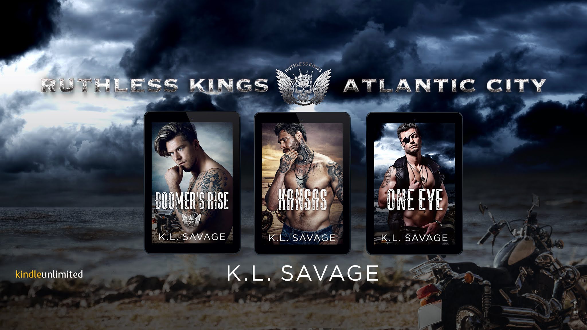 One-Eye (Ruthless Kings MC Atlantic City (A Ruthless Underworld Novel) by K.L. Savage. I have to start this review with I didn’t know this was book 3 which I can say that if I had known that I would have never read it. I am glad I didn’t know because I really liked this story. Definitely not a typical MC story I have read before. I really would like to read the other
