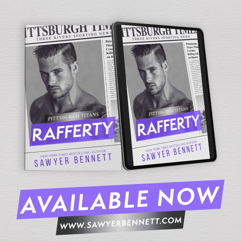 Rafferty (Pittsburgh Titans #15) by Sawyer Bennett. Rafferty has his hands full with Tansy. She just refuses to believe he doesn’t want to date her. While grocery shopping, he spots Tansy coming towards him. Once again, trying to deter her, Rafferty kisses the girl working in the grocery store. Tempe is working her shift when a good-looking guy asks her to play like he is her boyfriend. What started out as a ruse to get Tansy off his back, eventually turns into a real relationship, Rafferty nor Tempe expected.