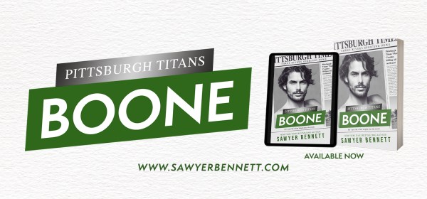 New Release from Sawyer Bennett Boone (Pittsburgh Titans, Book #11) Sawyer has FIVE signed paperbacks of Boone up for grabs on her website! If you’d